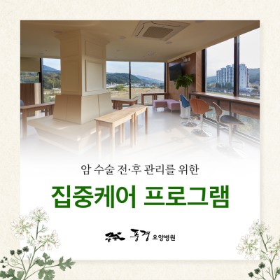 부산암요양병원추천 암 회복을 돕는 다양한 케어 프로그램 암 수술과 치료에 지친 암 환우분들께서는 회복에 필요한 재..